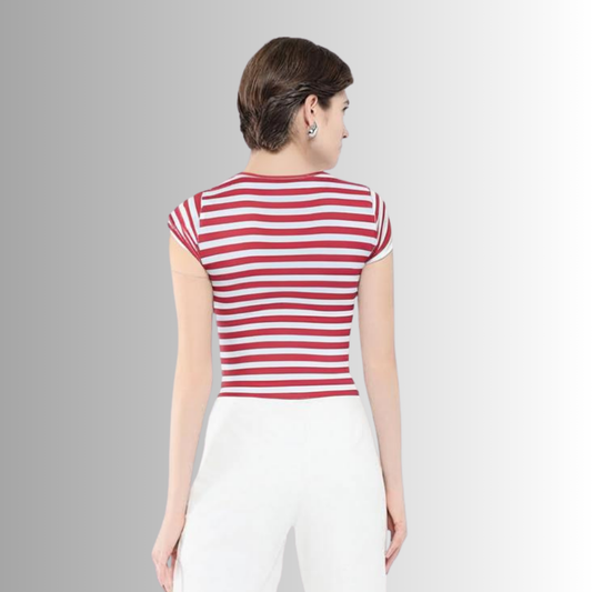Striped Cotton Crop Top for Women | Stretchable | Sizes S to L