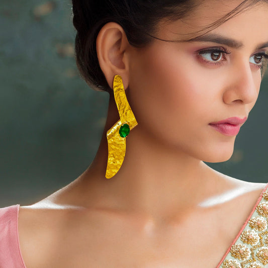 Gold Plated, Anti-Tarnish Hammered Folded Emerald Earrings✨