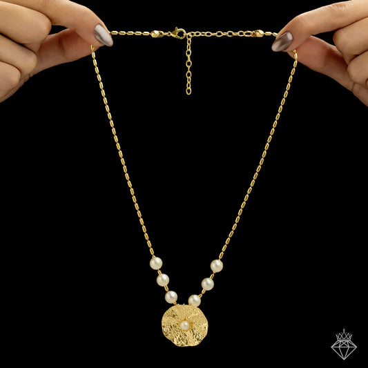 Gold Plated, Anti-Tarnish Hammered Pearl Necklace With Earrings✨