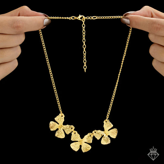 Gold Plated, Anti-Tarnish Lily Flower Necklace Set With Earrings✨