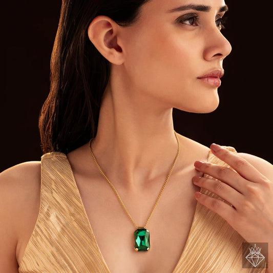 Gold Plated, Anti-Tarnish Emerald Bliss Pendant Set✨