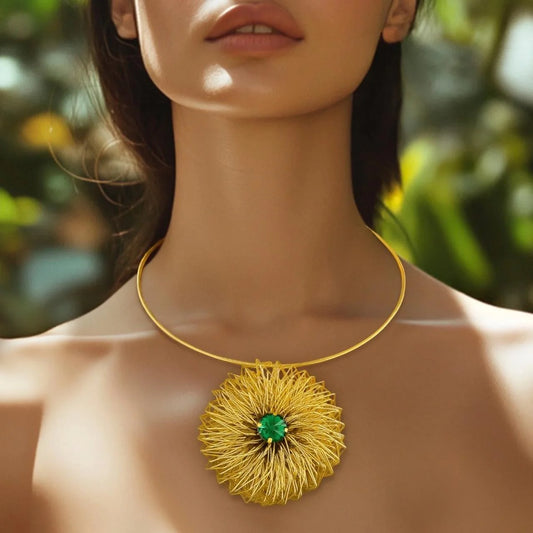 Gold Plated, Golden Nest Emerald Necklace✨