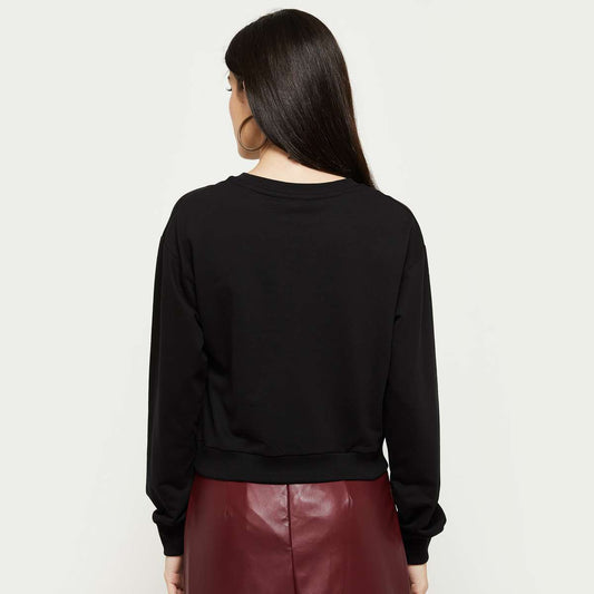 Women Black Solid Cropped Sweatshirts