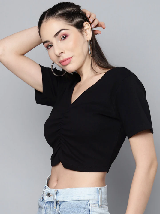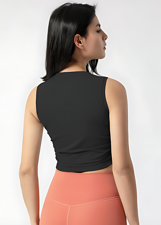 Black Sleeveless Ribbed One Shoulder Crop Top
