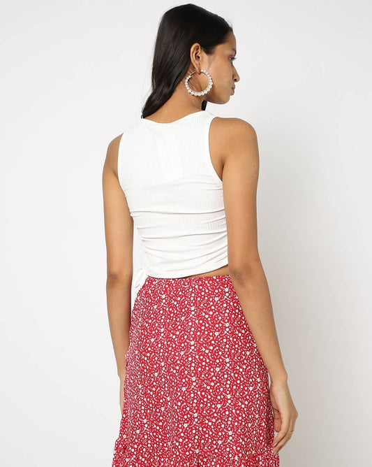 White printed Tank Top for Women | Cotton | Sizes XS to S