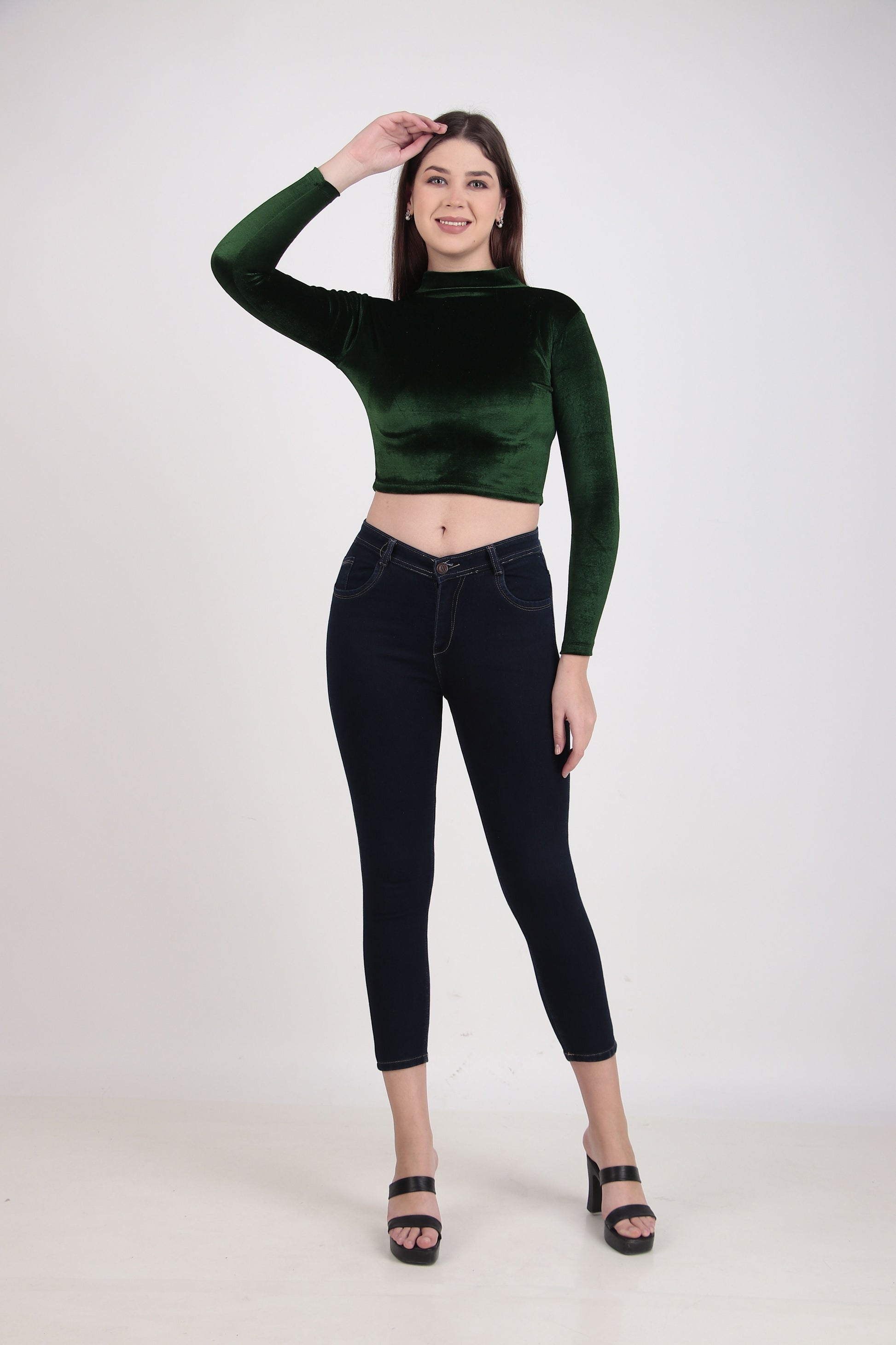 Our luxury velvet crop top will have heads turning this winter, providing both warmth and style. Constructed with exquisite stretchable velvet fabric, our designer crop top has all the features of a luxury piece including a chic turtle neck cut keeping you warm and welcoming all at the same time. This winter crop top offers the glam of a luxury experience. The richness in texture and universal appeal also makes it a perfect candidate for ethnic fusion fashion, so it is a must have ethnic crop top for today’s modern wardrobes. Built for comfort and confidence, the fashionable crop top is comfortable as well. The stretchy crop top allows the right amount of fashion but still allows for mobility, you can dance until dawn, or add layer after layer for a winter night out.