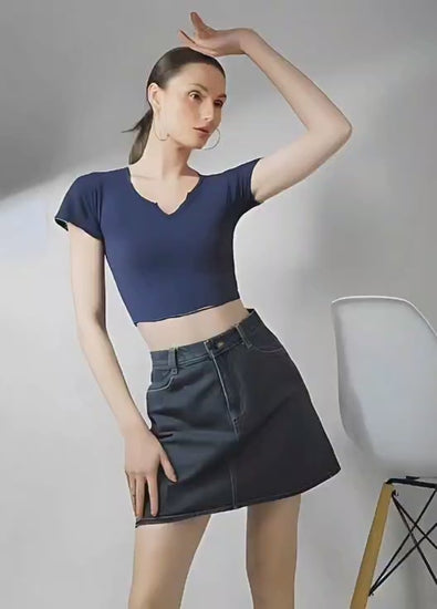 Navy Blue Solid Ribbed Crop top for Women | Stretchable | Stylish & Comfortable