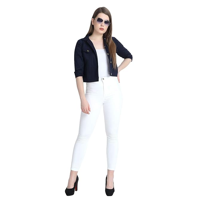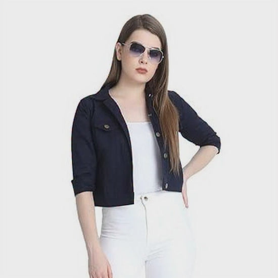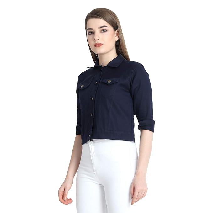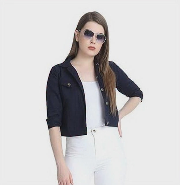 Navy Blue Denim Jacket for Women | Trendy & High Quality