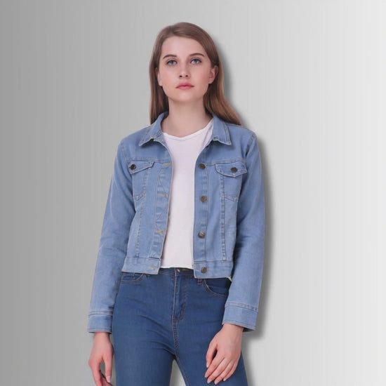 Light Blue Washed Look Denim Jacket for Women | Trendy & High Quality